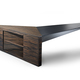 Darüber hinaus sind Euclideo-Ausführungen Teil der Ausdrucks- und Stilsprache des Systems und definieren die Funktionen der einzelnen Komponenten. Die hängende Arbeitsplatte, die den Gesetzen der Schwerkraft fast zu trotzen scheint, kontrastiert mit dem festen Raum des Sideboards, der auch optisch dem Gleichgewicht entgegenwirkt. Die Möglichkeit, zwischen verschiedenen Holzessenzen zu wählen, die von exotischen Hölzern bis zu den traditionellsten reichen, macht den gesamten Chefschreibtisch noch einzigartiger und exklusiver.