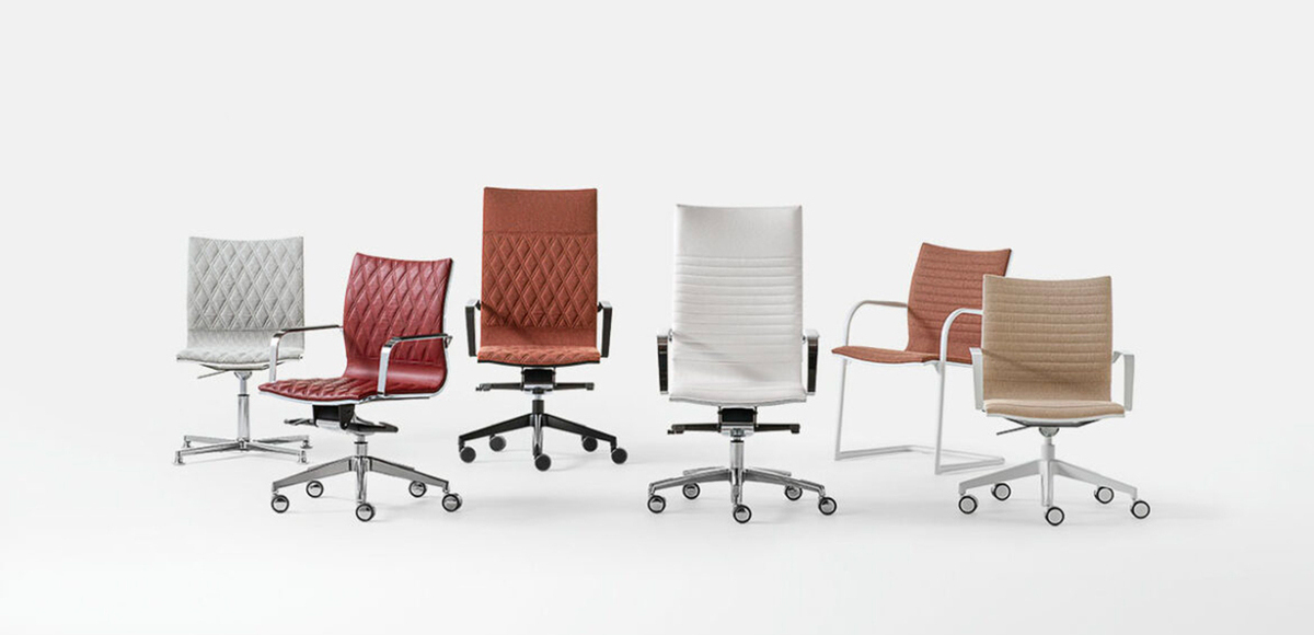 Der Direktionssessel Kruna von Kastel besitzt ein einteiliges Gestell aus verchromtem oder weiß lackiertem Stahl und kann mit einer hohen oder niedrigen Rückenlehne ausgestattet werden. Grundelement von Rückenlinie und Sitzfläche ist ein Polyesternetz mit Überzügen in verschiedenen Farben und Ausführungen. Dieser Sessel steht als feststehender Sessel oder mit Wippmechanismus und „knee tilt“-Mechanismus zur Verfügung.