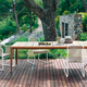 Harp von RODA, entworfen von Rodolfo Dordoni, ist eine Hommage an traditionelle Handwerkskunst im Kontext moderner Outdoor-Möbel. Pulverbeschichteter Edelstahl trifft auf von Hand gespannte Polyester- oder Acrylschnüre und schafft rhythmische Leichtigkeit.