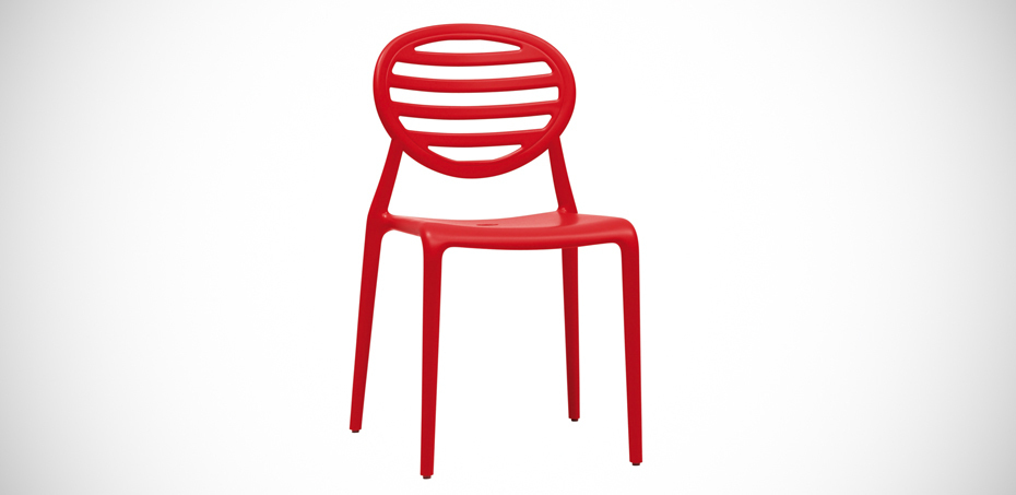 Der Designer-Stuhl Gio von Scab Design besitzt eine Struktur aus glasfaserverstärktem Polypropylen, die im Injektionsverfahren mit „Air Moulding“-Techonologie hergestellt wird, steht in verschiedenen Farben zur Verfügung, ist stapelbar und eignet sich sowohl für Innenbereiche als auch für Außenbereiche.